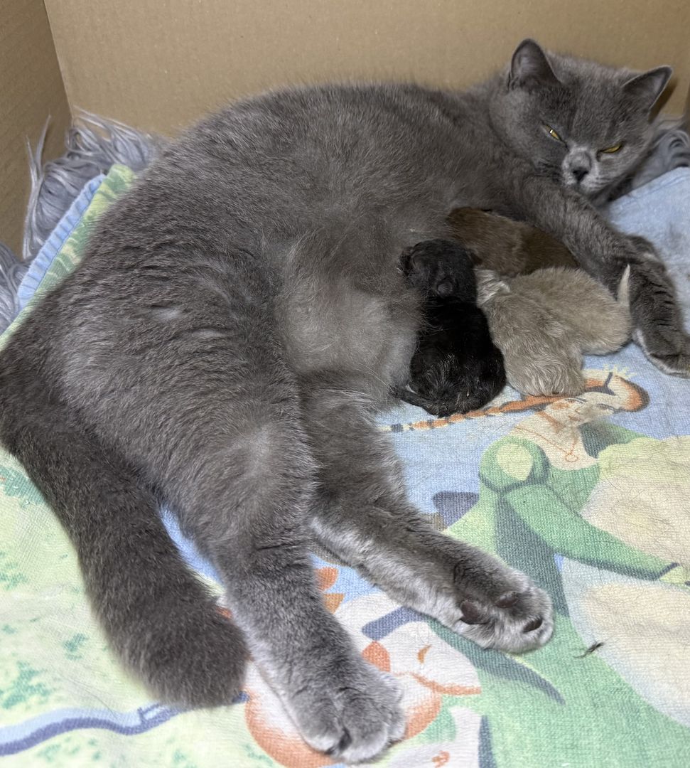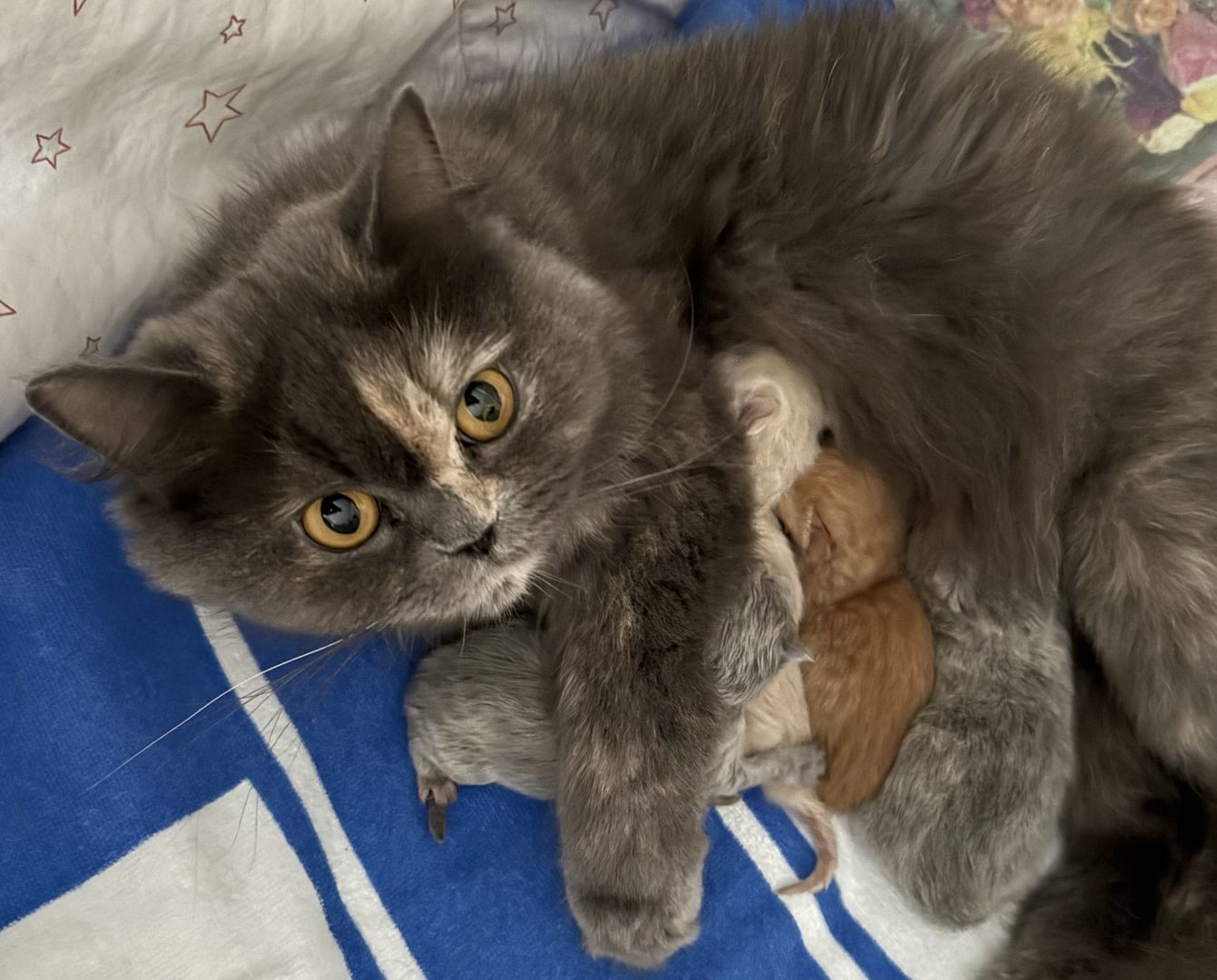 Aktuell: Der erste von 3 erwarteten Würfen ist am Freitag 20.03.26 abends angekommen. Unsere blaue BKH Katze Molly hat 4 Kitten in chocolate, schwarz, blau und lilac zur Welt gebracht. So wie es aussieht alles Kater.